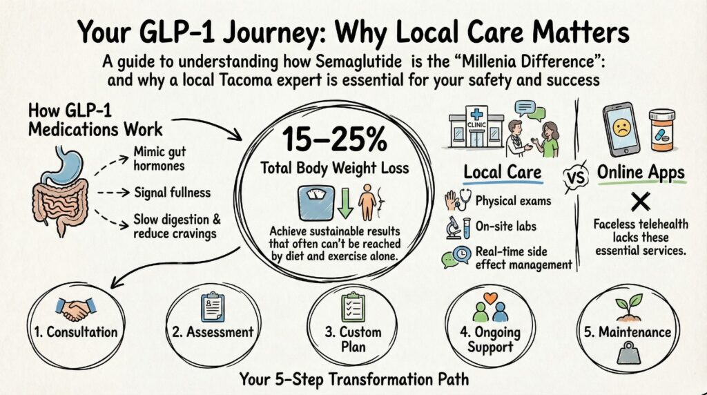 At Millenia Medical Center in Tacoma, we believe those questions deserve thorough, honest, expert answers. This guide was written by our clinical team to help you make an informed decision about whether GLP-1 weight loss therapy is right for you.