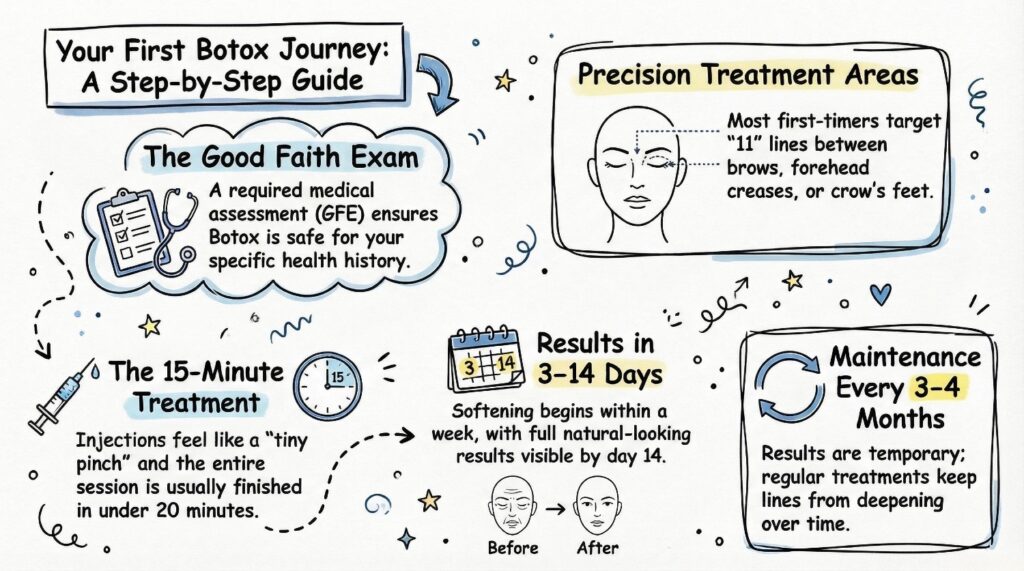 During check‑in, you will complete forms about your medical history, medications, allergies, prior cosmetic procedures, and specific areas that bother you. Being honest about conditions like neuromuscular disorders, bleeding issues, or pregnancy/breastfeeding helps your provider customize treatment and avoid unnecessary risks.